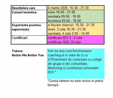 - acces la comunitatea de coachi a Romanian Coaching Institute